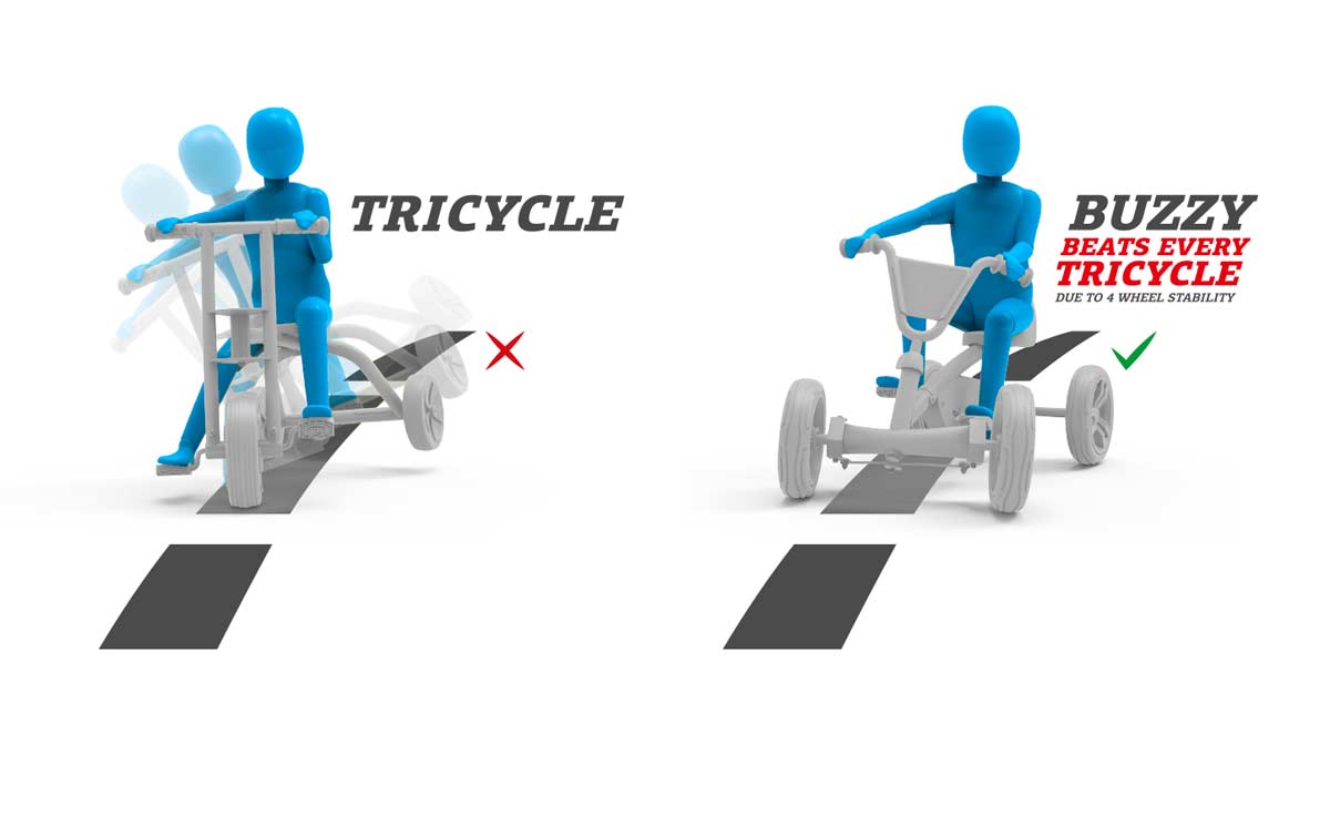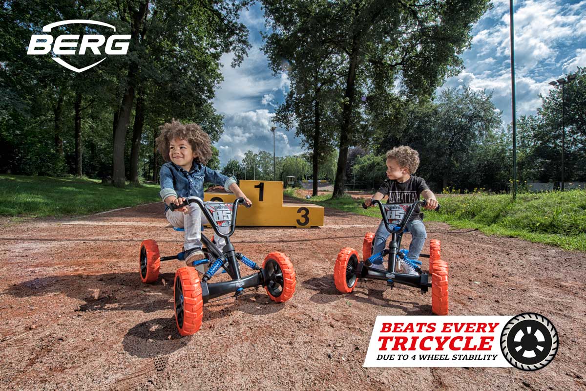 BERG Buzzy, das innovative Dreiradfahrzeug von BERG mit vier Rädern!