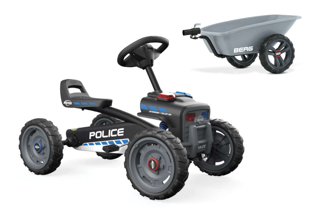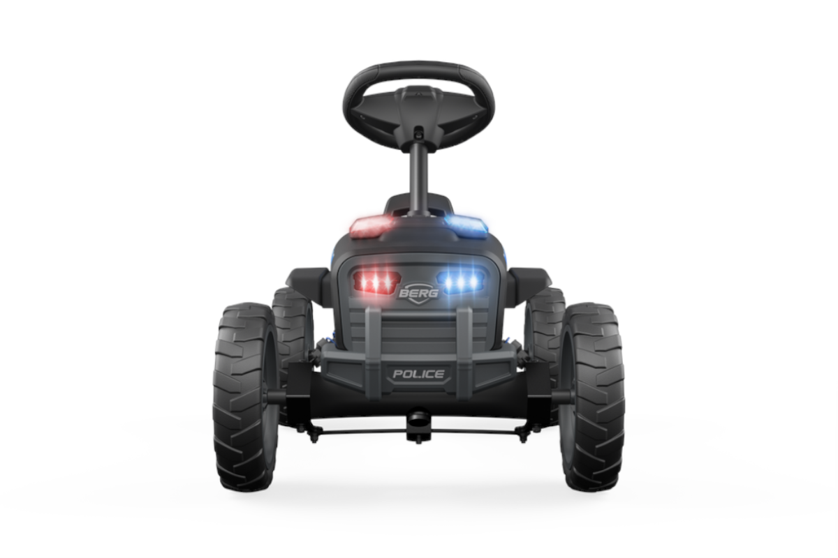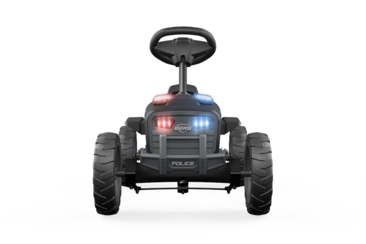 Dank seiner vier Räder ist der Buzzy Police von BERG viel stabiler als ein Dreirad. Das ist super sicher! Außerdem liegen deine Füße auch in den schärfsten Kurven fest auf den Pedalen auf, weil die Pedale nicht mit dem Lenker verbunden sind. Dadurch wird das Treten der Pedale viel einfacher, und du wirst über Trottoir oder Asphalt regelrecht hinwegzischen. Und rückwärts geht‘s genauso schnell!