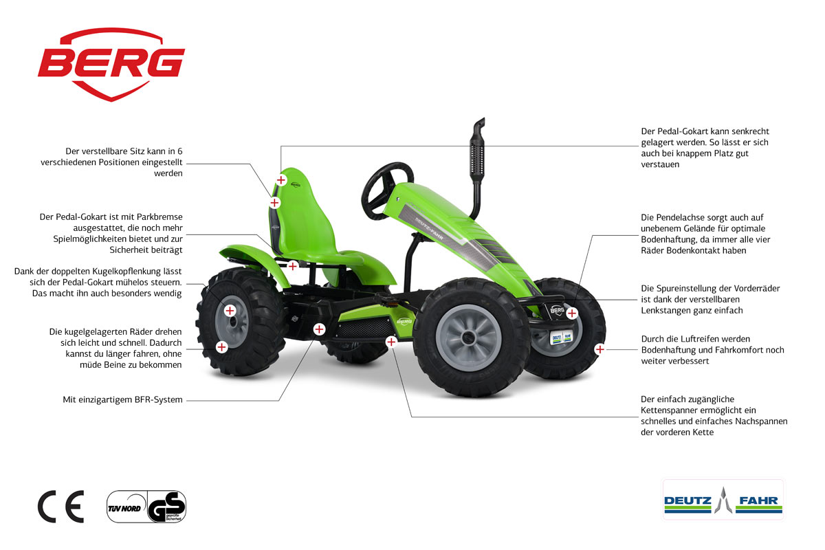 Das coole BERG Deutz Fahr Pedal-Gokart auf einen Blick: