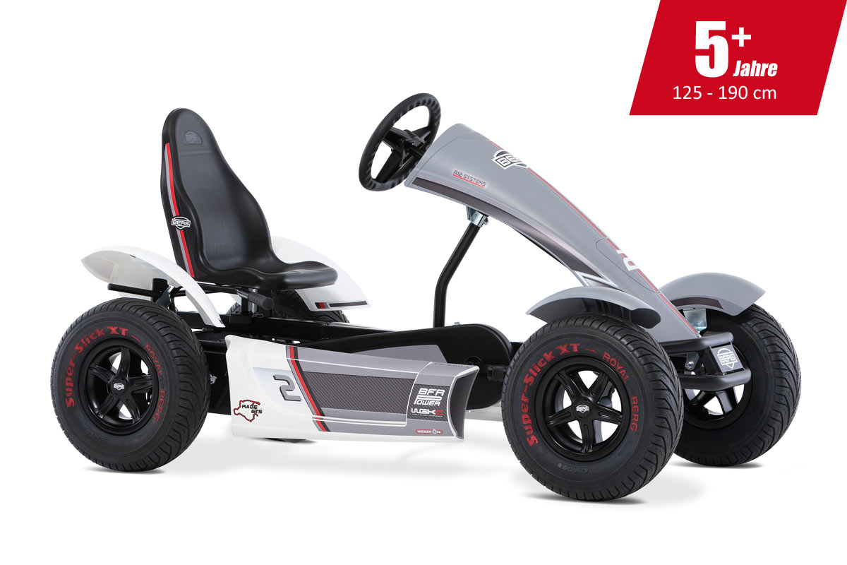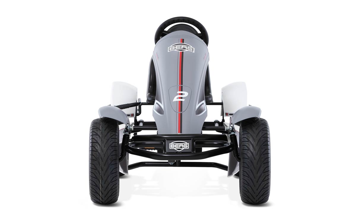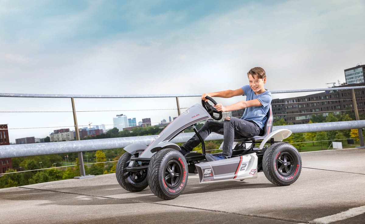 BFR steht für "Brake" (Bremse), "Freewheel" (Freilauf) und "Reverse" (Rückwärtsfahren). Das BFR-System ermöglicht es, mit den Pedalen zu bremsen und sofort nach dem Anhalten rückwärts zu fahren. Dazwischen sorgt der Freilauf dafür, dass die Pedale stillstehen, während sich die Räder drehen. Somit bist du mit deinem BERG Pedal-Gokart jederzeit sicher unterwegs.