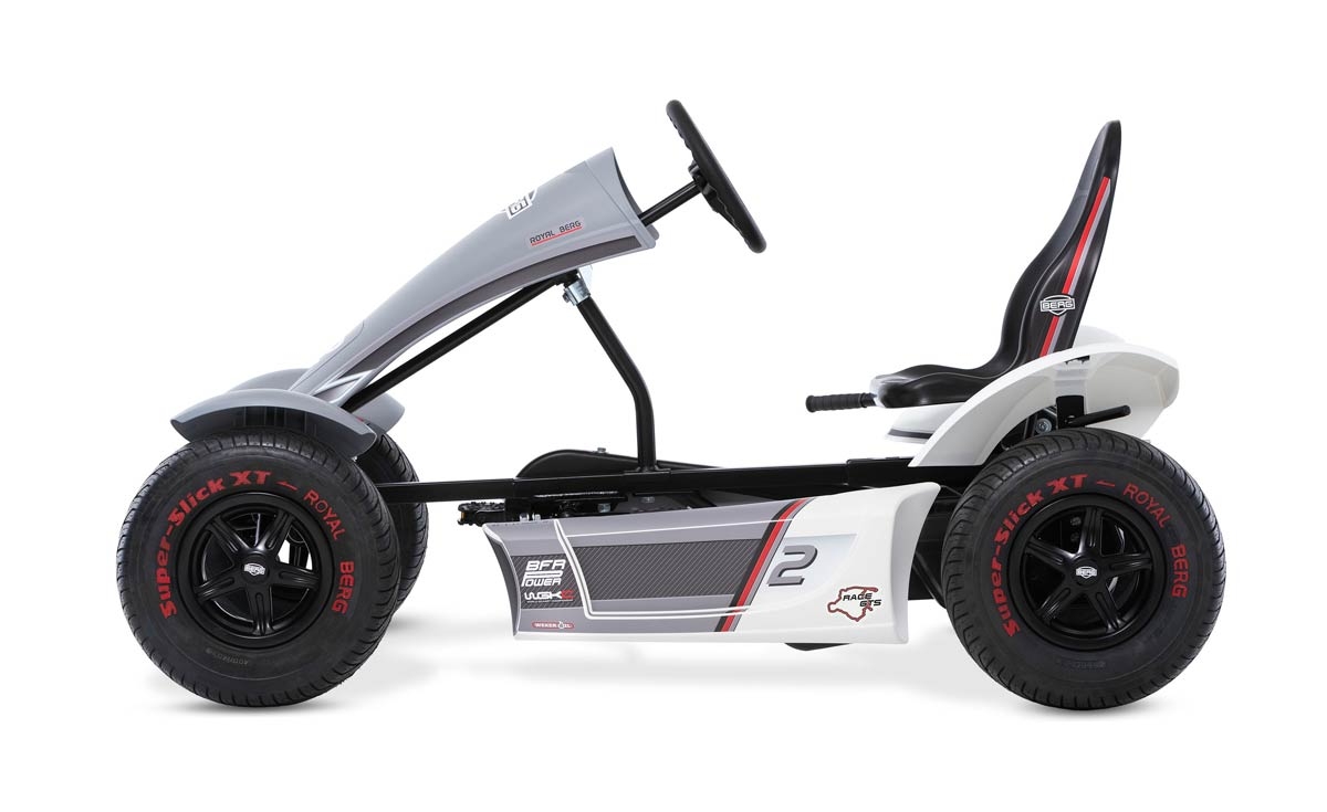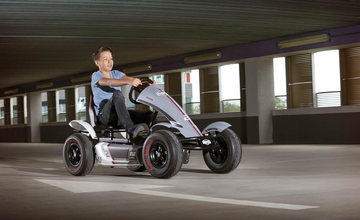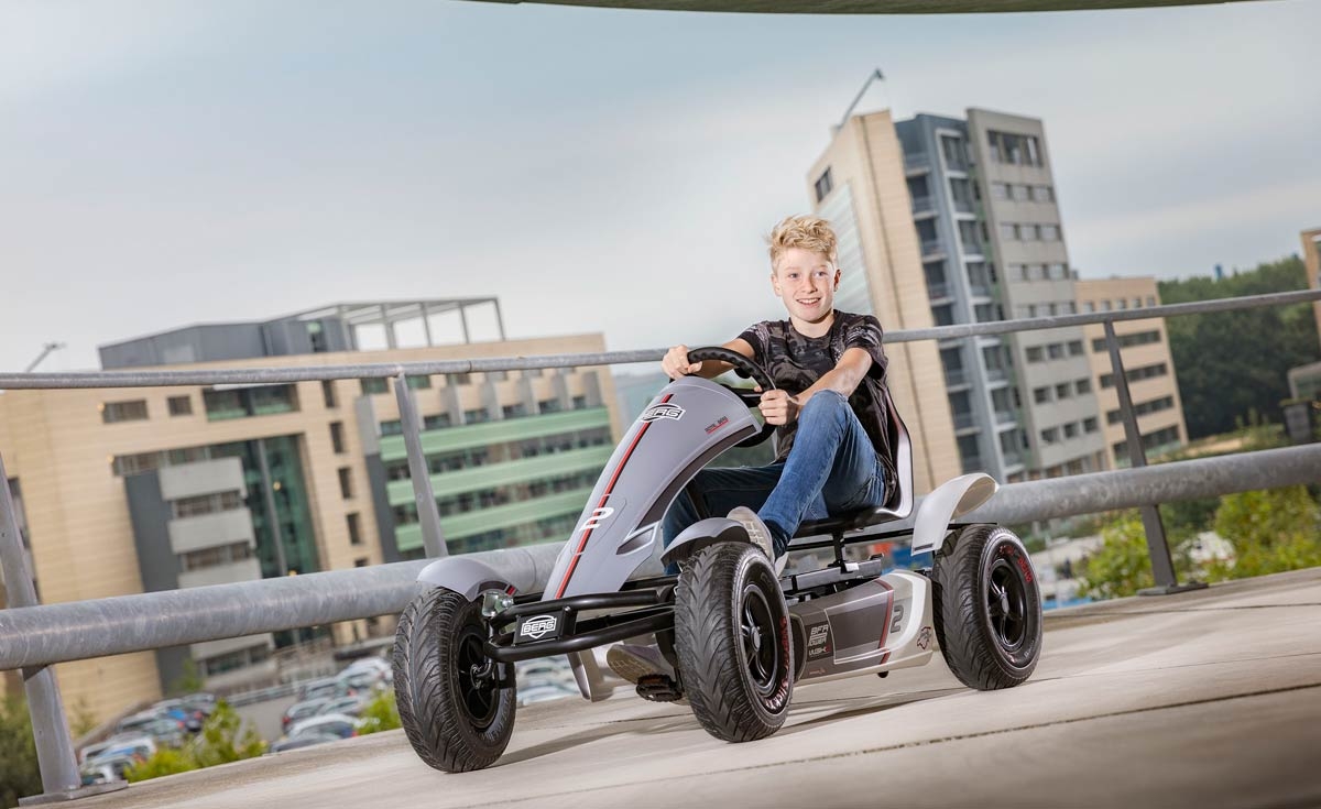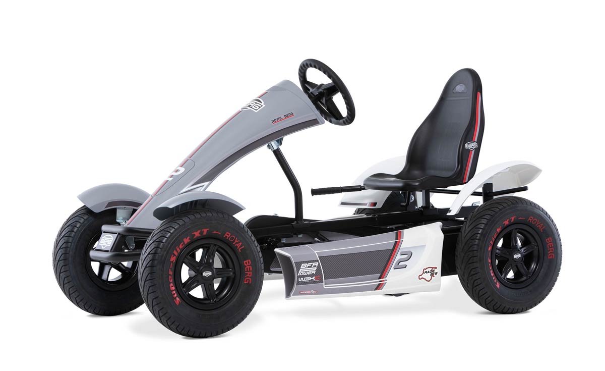 BFR steht für "Brake" (Bremse), "Freewheel" (Freilauf) und "Reverse" (Rückwärtsfahren). Das BFR-System ermöglicht es, mit den Pedalen zu bremsen und sofort nach dem Anhalten rückwärts zu fahren. Dazwischen sorgt der Freilauf dafür, dass die Pedale stillstehen, während sich die Räder drehen. Somit bist du mit deinem BERG Pedal-Gokart jederzeit sicher unterwegs.