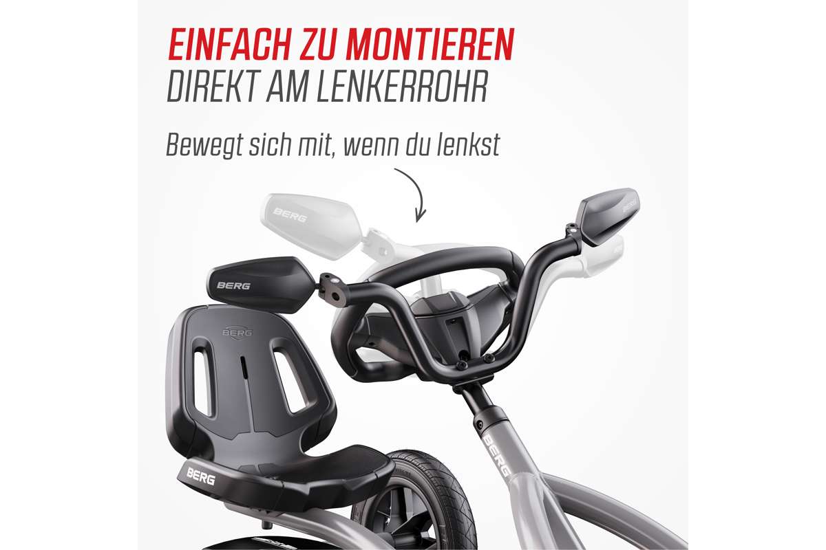Beim Rennen fährst du gerne vorne. Möchtest du sehen, wer hinter dir fährt? Dann ist das BERG Spiegel-Set genau das Richtige für dich. Dieses Set besteht aus zwei verstellbaren Spiegeln (links und rechts).